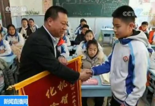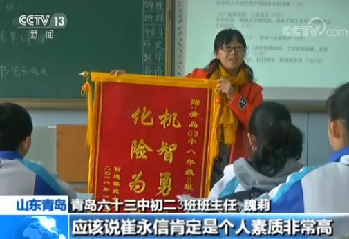 1月23日,302住户刘先生来到崔永信所在的青岛六十三中,为崔永信送上了一面锦旗,直到这时,学校老师才知道崔永信做的这件好事。