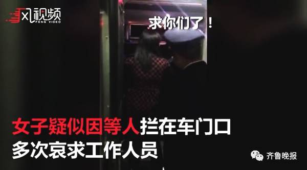 视频中,一女子疑因等人而拦在车门口多次哀求工作人员,现场工作人员多次劝说后,女子仍然不肯让开。