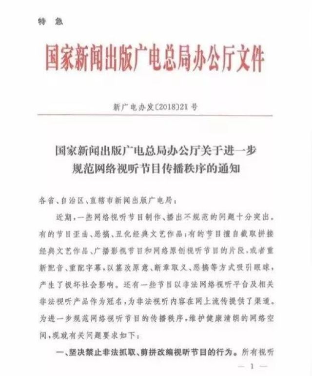 3月22日,国家广电总局发布《关于进一步规范网络视听节目传播秩序的通知》。