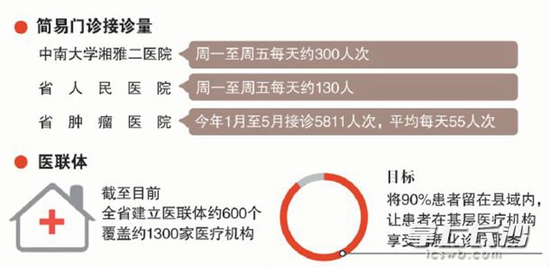 中南大学湘雅二医院门诊办主任李异介绍,该院周一至周五简易门诊的接诊量大约每天300人次,相对于该院每天过万人次的门诊量而言,简易门诊的接诊量较少。
