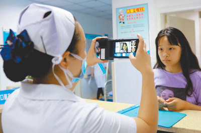 四川省华蓥市引进被称为医保“电子警察”的智能监管系统。通过该系统,医保经办机构可在线实施远程查房、调阅病历、医保号查询等操作,变原来的事后审查为事中监管和审查,有效杜绝骗保行为。图为华蓥市人民医院一名护士利用医保智能监管系统手持移动端对患者进行“脸谱”采集。周松林摄
