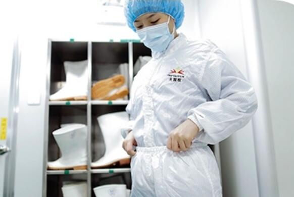 配制环节在GMP十万级的洁净车间进行,洁净车间相当于外科手术室标准。员工每次进入车间必须进行二次更衣,穿专用洁净布鞋、洁净服、戴口罩、网帽,需洗手消毒,进入风淋室停留10秒去除身上灰尘。员工禁止直接用手接触物料,须穿戴一次性手套,并且每次出入一次洁净车间都要更换手套。