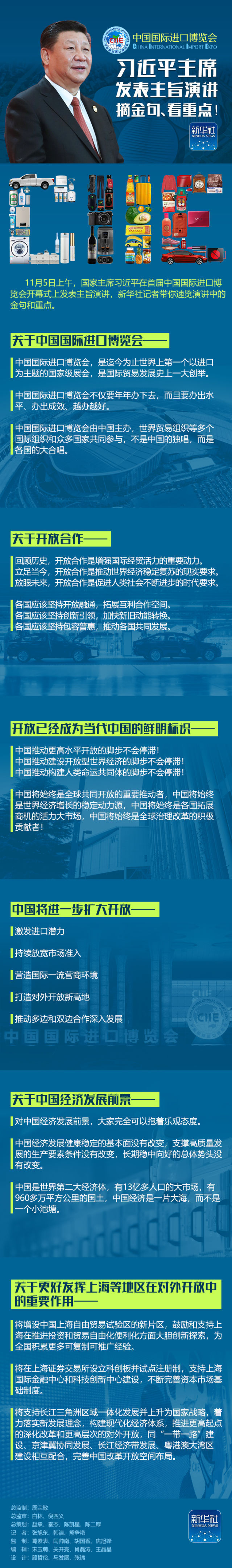 举办中国国际进口博览会,是中国着眼于推动新一轮高水平对外开放作出的重大决策,是中国主动向世界开放市场的重大举措;这体现了中国支持多边贸易体制、推动发展自由贸易的一贯立场,是中国推动建设开放型世界经济、支持经济全球化的实际行动。