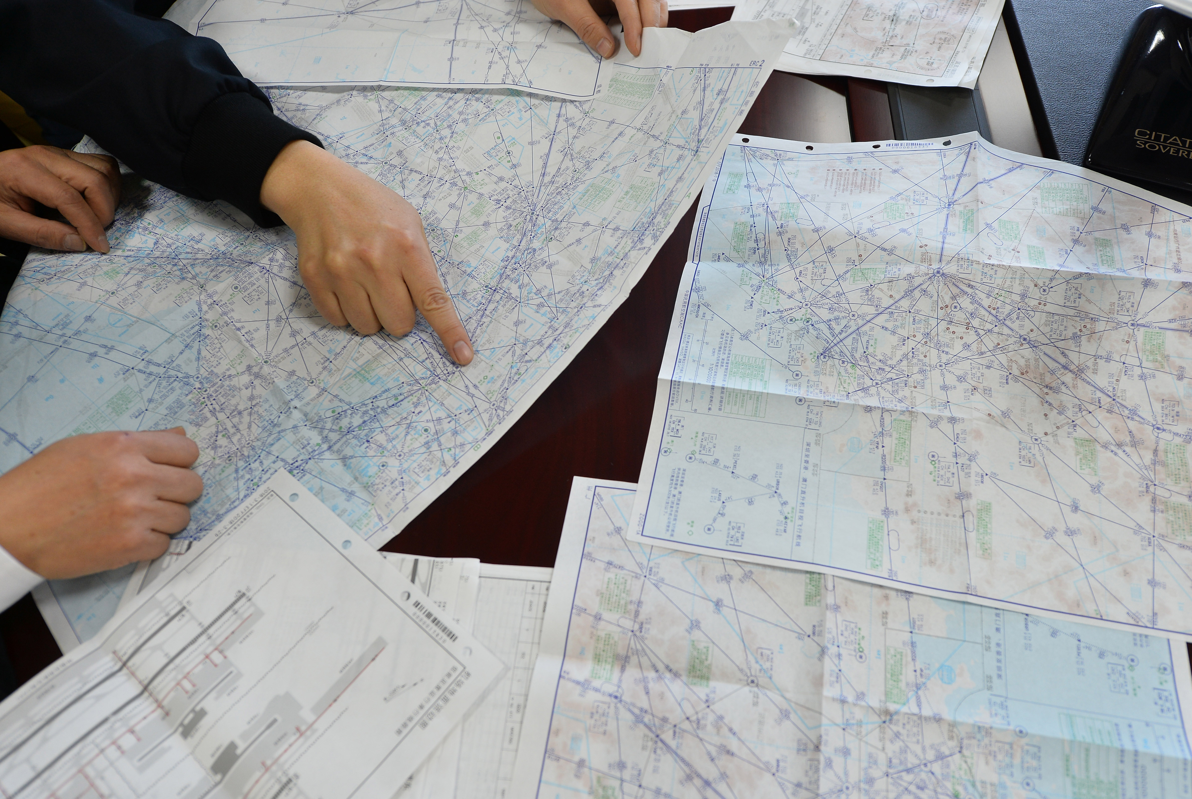 机组提前准备大兴机场航图。摄影/新京报记者 李木易