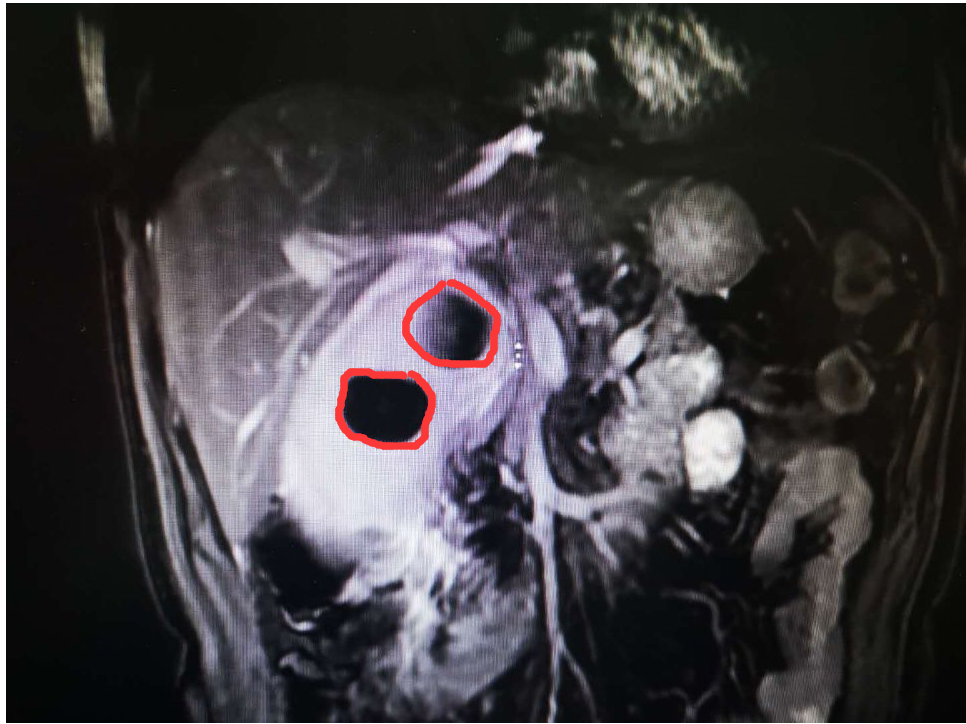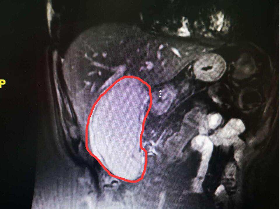 2月10日晚上,杨先生一行回到北京,此时他将近3天水米不进了,时不时的疼痛更是让他难以入眠,已无法行走,全程坐轮椅。到长沙黄花机场时,他神情疲惫,心力憔悴,身体十分虚弱。一下飞机,就打了个的士直奔长沙市中医医院(长沙市第八医院),入住东院外一科。经CT等检查显示,其胆囊巨大,像个茄子,里面有几个较大的结石。科室立即给予抗炎、止痛、利胆等对症支持处理