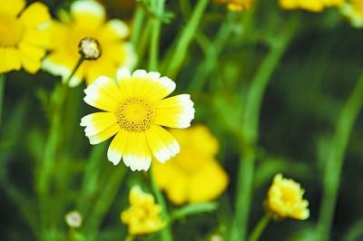 它既是菜、药,也是观赏花卉。茼蒿的花朵,形似小菊花,有的纯黄,有的黄白相间。