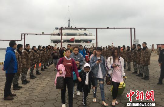 “北游25”游轮上的旅客走出舱门。 彭庆 摄