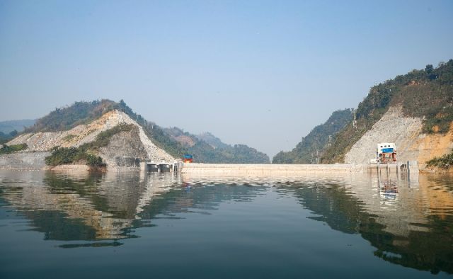3月20日,从库区看到的老挝南塔河1号水电站。(新华社记者王婧嫱摄)