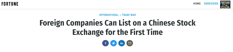 美国《福布斯》杂志网站报道,中国首次允许海外公司在中国证券交易所交易。具体来说,英国上市公司将获准在上海发行某种形式的股票,而一些中国公司将能够在伦敦交易所筹集资金。