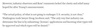 但从英国路透社的报道来看,不少美国企业和业内观察人士仍对美国商务部的这一最新表态持观望态度,因为美国商务部并没有明确地表示什么样的交易才不会对美国的国家安全构成威胁。
