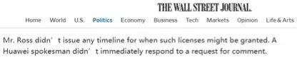 最后,路透社和《华尔街日报》都认为,那些想与华为继续进行业务往来的美国企业,看来还是得先向美国商务部提交许可申请,再由该部决定究竟什么样的交易可以被允许了。