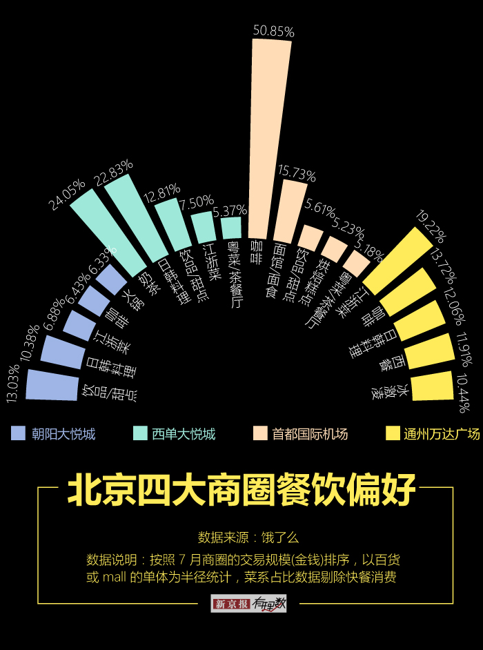 某出行平台 2018 年公布的数据显示,北京是中国夜间出行占比最高的城市。相关数据也显示,王府井、三里屯和青年路等区域晚上 6 点至次日凌晨 6 点夜间消费尤为活跃,餐饮消费同比增长达 51.3% ,东方新天地等 24 家购物中心客流量增长近 40% 。