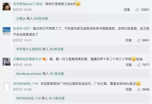 对国泰航空而言,很长一段时间,来自香港和内地的旅客为其贡献了总收入的一半以上。?但这次闹过之后,内地同胞所获点赞最多的态度是:“祝你们连续罢工365天。”