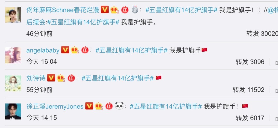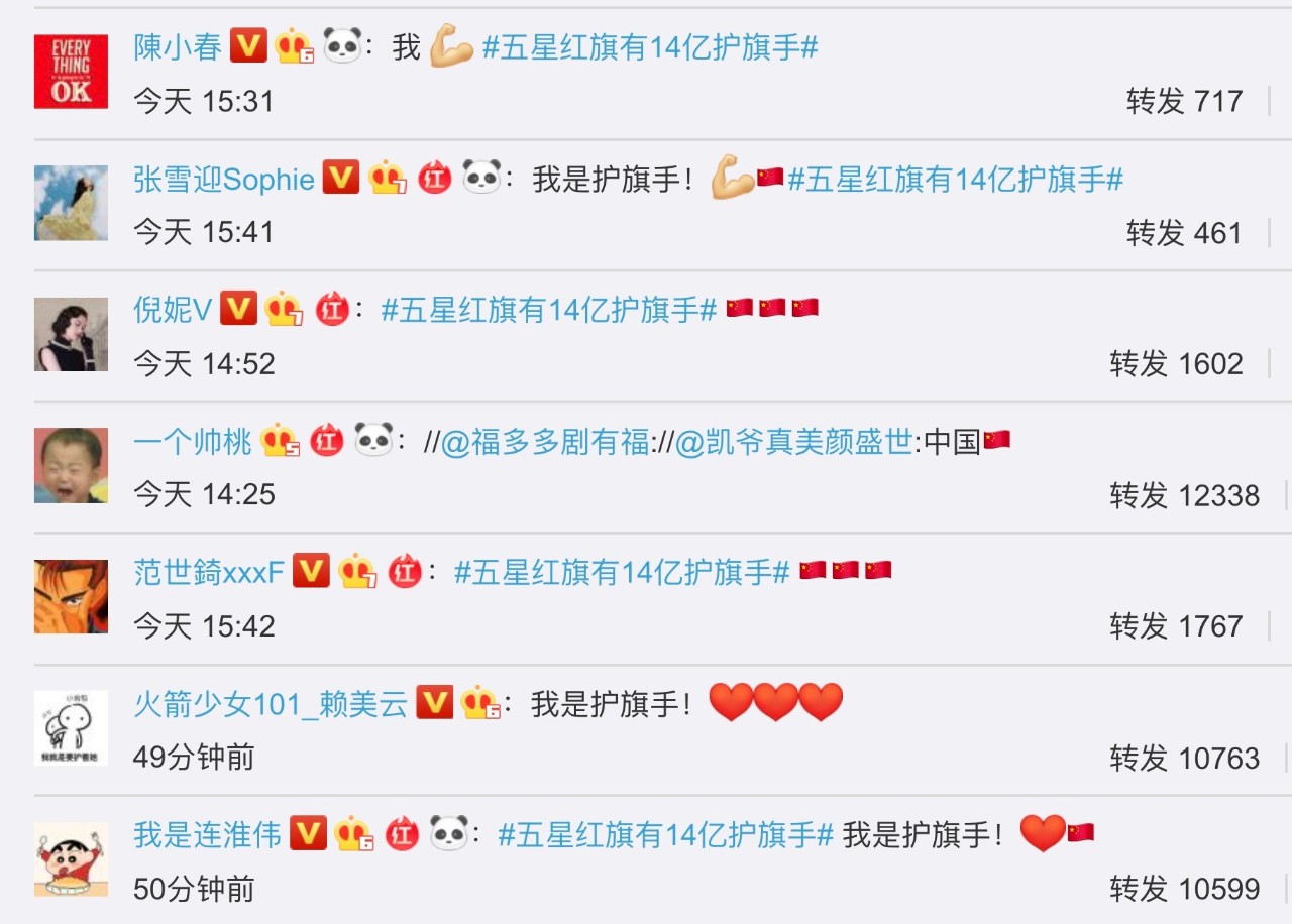 8月4日,央视新闻发起的话题#五星红旗有14亿护旗手#冲上热搜第二,14亿分之一的护旗手纷纷前来报到!