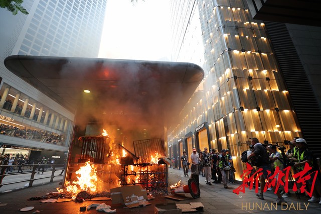 湖南日报·新湖南客户端·华声在线香港9月8日电(特派香港前方报道组)9月8日下午,香港中环地铁站多个出入口遭到示威暴徒破坏,其中一个出入口更遭放火。傍晚开始,暴徒从中环、金钟转至铜锣湾地铁站进行打砸破坏。香港警方提前布控,迅速出击,现场带走几名暴力破坏者。面对顽固暴力示威者,警方现场多次劝离无效后发射催泪瓦斯,并从轩尼诗道由东往西推进,驱散暴力示威者。