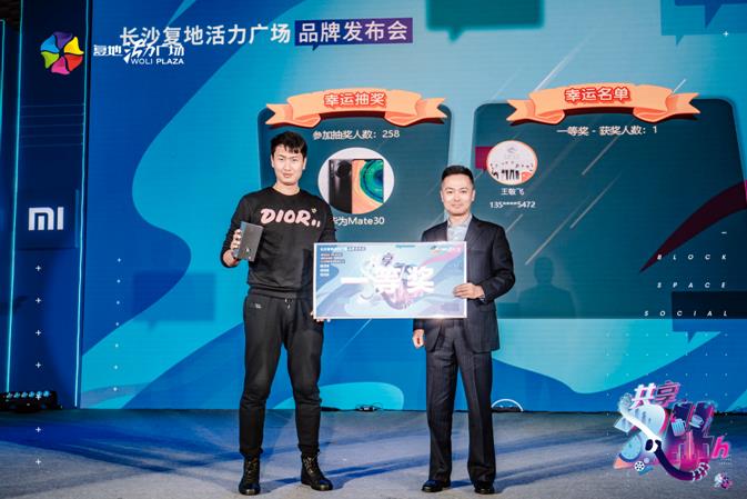 (复地产业发展集团副总裁兼商业事业部执行总裁杨珂勇与幸运观众合影)
