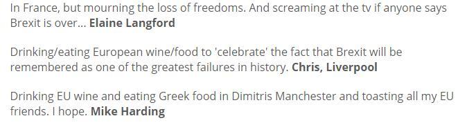 留欧一派则垂头丧气,有人称“无法面对”这一结果,要逃去法国;有人称将喝着欧盟的酒,吃着希腊的肉,来“庆祝”这一失败的时刻;还有人干脆想“躲在冰箱里”!