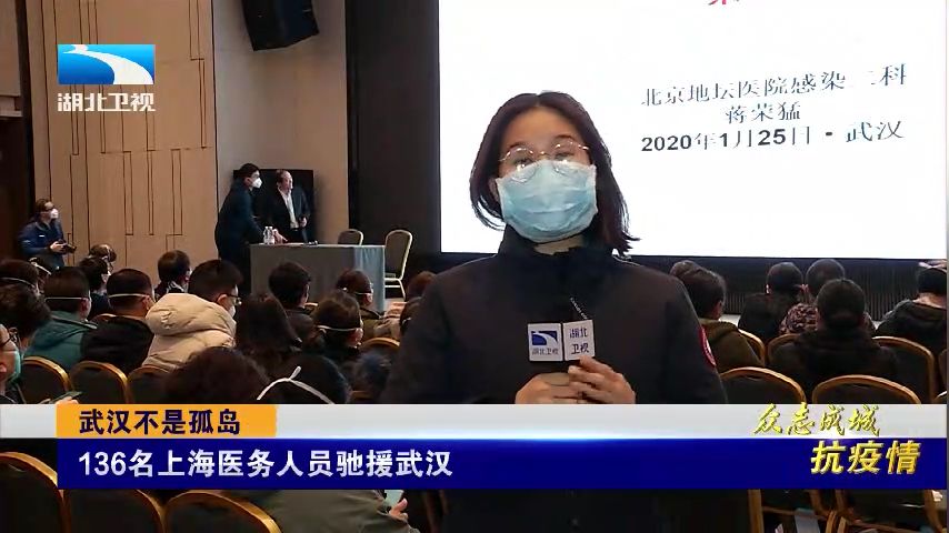 记者 方宇航:我现在是在武汉金银潭附近的卓尔万豪酒店,今天凌晨来自上海的136名医务人员在经历了短暂休整后,现在正在接受培训,等待分配任务,分配完任务之后他们将进入金银潭医院开展工作。