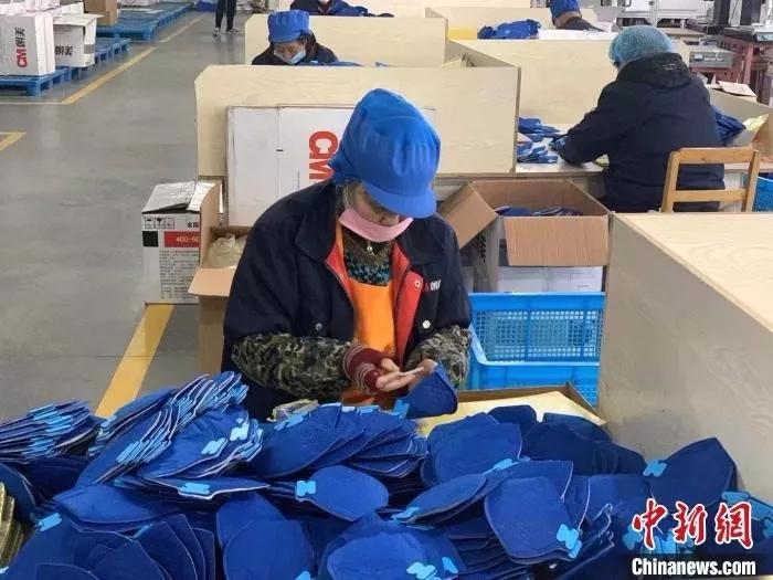 浙江建德一企业工人们加班赶制口罩。 建宣 摄