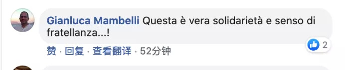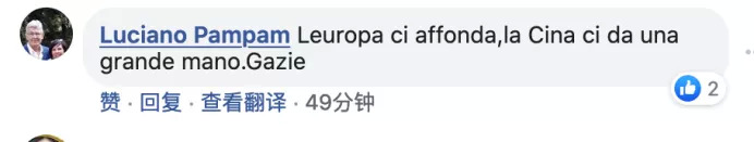 网友Filippone Giuseppe说,“谢谢中国人,(这会儿)欧洲国家又在哪里?”
