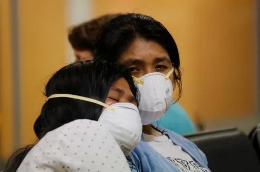 3月6日,在秘鲁卡亚俄的豪尔赫·查韦斯国际机场,人们佩戴口罩等候登机。新华社发