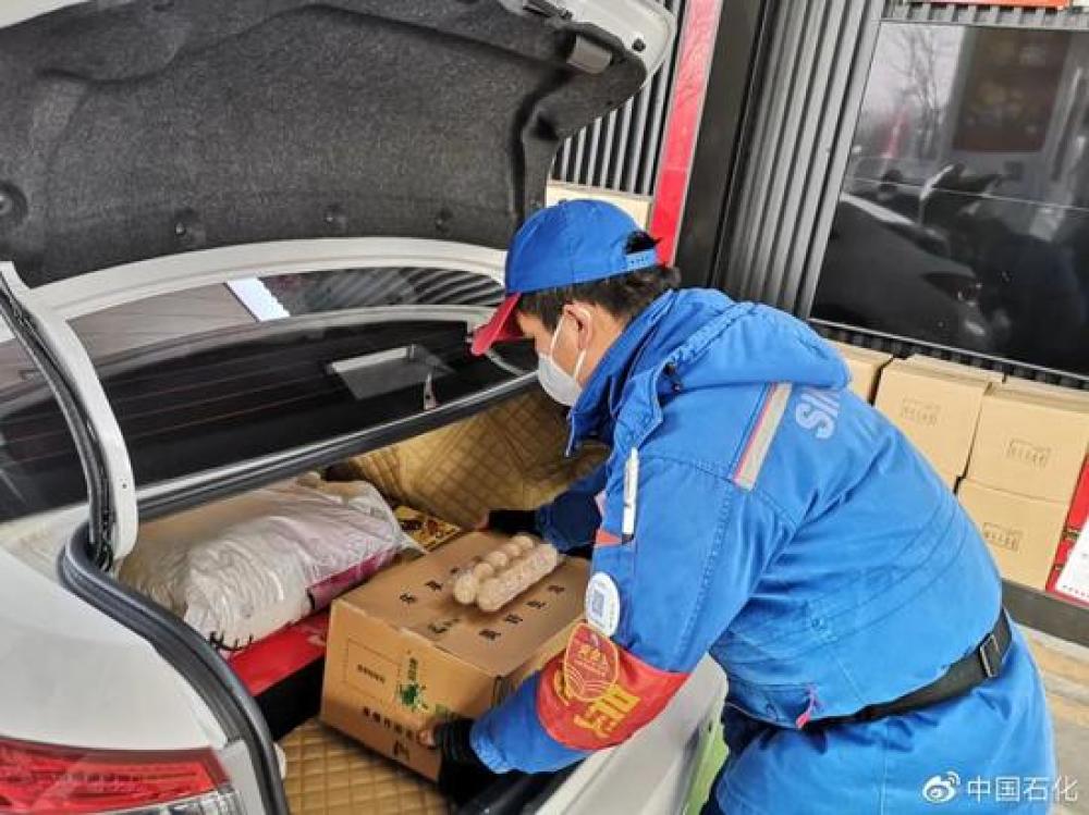 ▲图为中石化加油员帮助顾客将商品放入后备箱。图片来源:中国石化微博
