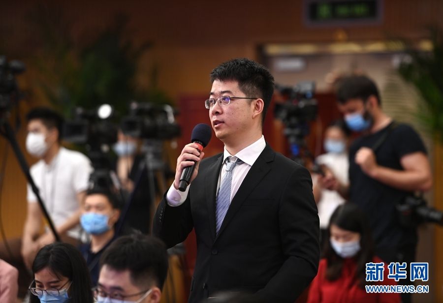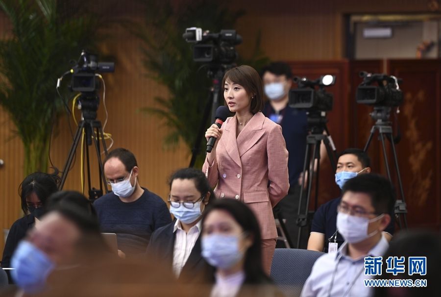 5月21日,十三届全国人大三次会议新闻发布会在北京人民大会堂新闻发布厅举行,由大会发言人张业遂就大会议程和人大工作相关问题回答中外记者提问。为有效防控疫情,共同维护公共卫生与健康,新闻发布会采用网络视频形式进行。这是记者在梅地亚中心多功能厅提问。 新华社记者 陈晔华 摄