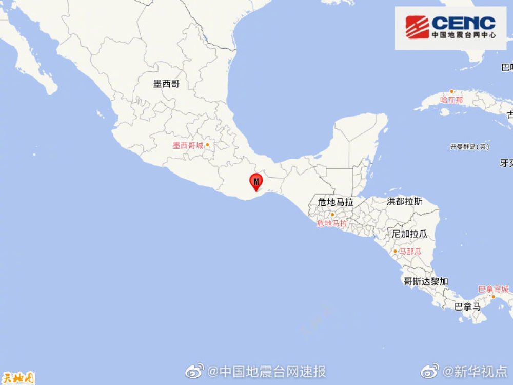墨西哥国家地震局当天发布消息说,地震发生在当地时间23日10时29分(北京时间23时29分),震中位于瓦哈卡州克鲁塞西塔以南23公里处,震源深度5公里。