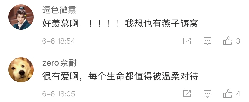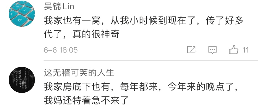 自己家房底下也有燕子筑巢每年都盼着它们来