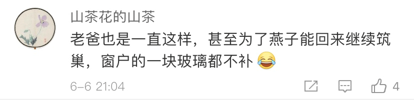 “5月份来大概6月中旬它的宝宝就出来了”杨师傅表示为方便燕子进出在筑巢时节他每天早上6点多便起来开门晚上也会在门下留一道缝等到晚8点左右才关门 “一直都是这样从每年5月一直到9月末燕子飞走”