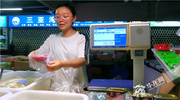 三亚湾农贸市场里的智慧秤,市民正在购买食材。华龙网-新重庆客户端记者 袁舒含 摄