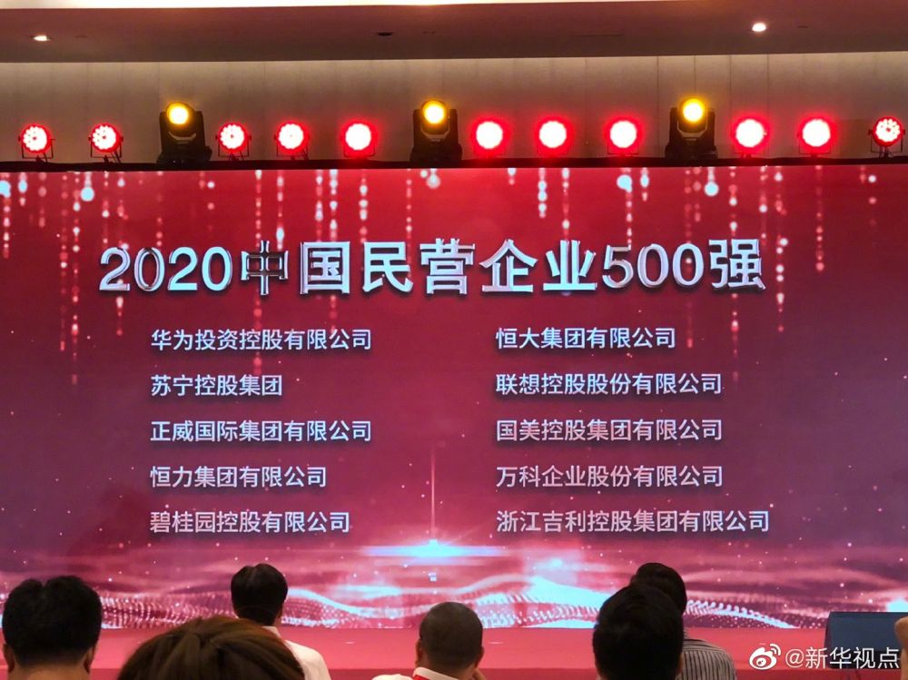 由全国工商联主办的2020中国民营企业500强峰会10日在京举行,发布2020中国民营企业500强榜单。华为投资控股有限公司以2019年营业收入8588.33亿元蝉联榜首。(记者曹典)