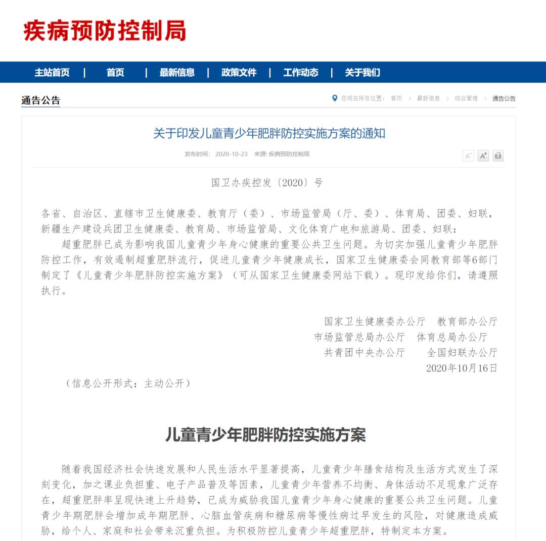 为破解儿童青少年超重肥胖难题,今天, 国家卫生健康委办公厅、教育部办公厅等六部门发布了《儿童青少年肥胖防控实施方案》,其中在重点任务中明确提出,教师不得“拖堂”或提前上课,保证学生每节课间休息并进行适当身体活动;公共体育设施免费或低收费向儿童青少年开放,支持中小学体育场地设施在课余时间和节假日向儿童青少年开放;对高糖、高脂、高盐食品加强食品标签管理,不鼓励针对儿童的营销及食品包装中使用吸引儿童的图片、描述和外形设计。