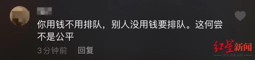 视频下方的评论中,网友产生了激烈的讨论,反对此做法的网友称:“他插的队,是别人等了好几个小时的,插队的人越多,那对按规矩等餐的人就越不公平。”并表示,“如果商家真有这样的服务,再好吃都不会去。”有网友则表示:“一个付出时间,一个付出金钱,这也是一种公平。”