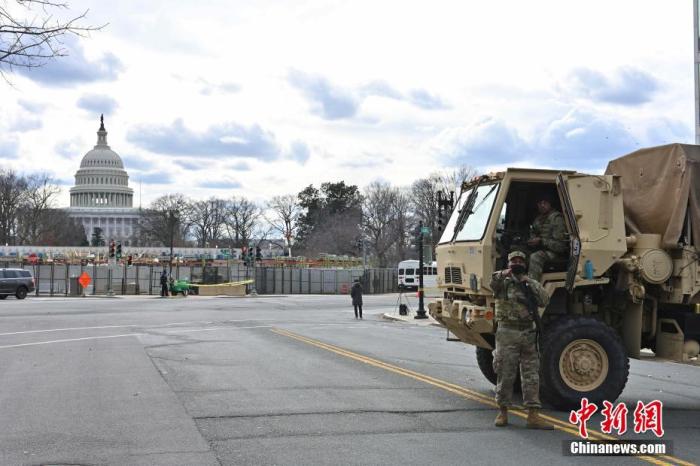 美国当选总统拜登就职典礼定于1月20日举行。1月6日国会骚乱事件发生后,美国首都华盛顿特区处于高度戒备状态。国会大厦四周竖起高高围栏,市中心多条道路被封锁,五角大楼调派2.5万名国民警卫队队员参与就职典礼安保工作。