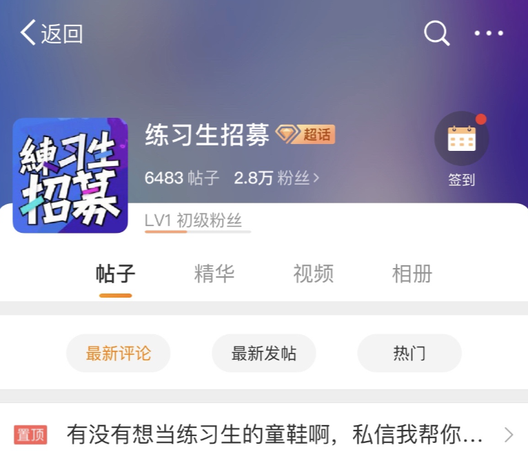 在微博练习生相关的超级话题、练习生百度贴吧等网络渠道中,存在大量“招募”“成团”信息。其发布者往往自称“艺人统筹”“经纪人助理”,并配以公司的文字和海报介绍。此外,一些所谓的“星探”“经纪人”还会在抖音等平台以私信方式进行招募。