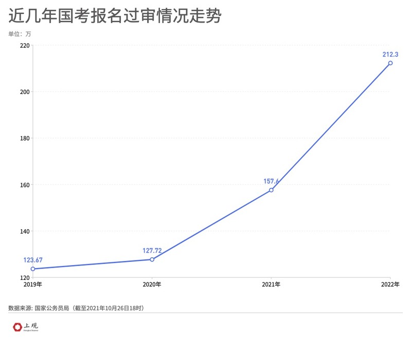 2022年国考报名已落下帷幕。今年国考报名人数再创新高,根据国家公务员局的数据,本次过审人数达212.3万人,同比增长34.7%,而这也是国考报名人数首次突破两百万。