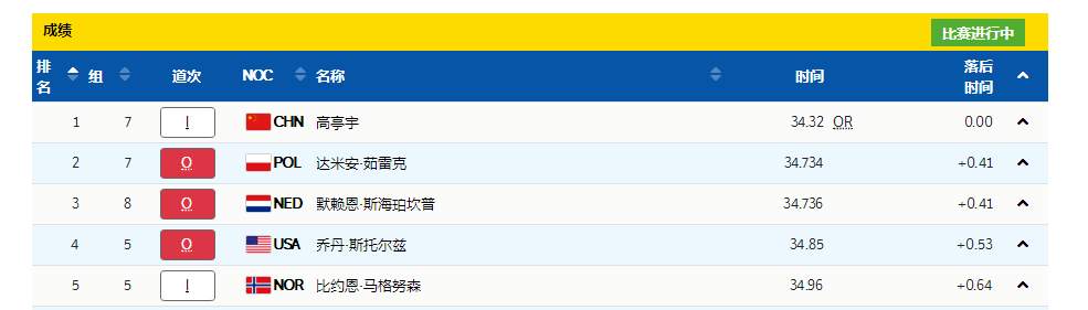 刚刚,在北京冬奥会速度滑冰男子500米决赛中,中国选手高亭宇成绩为34秒32,刷新奥运纪录,暂列第一。