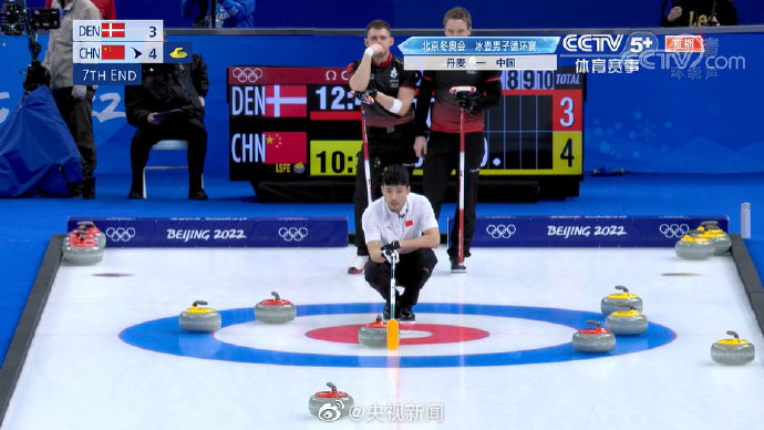 中国冰壶男队对阵丹麦队,中国5:4险胜!
