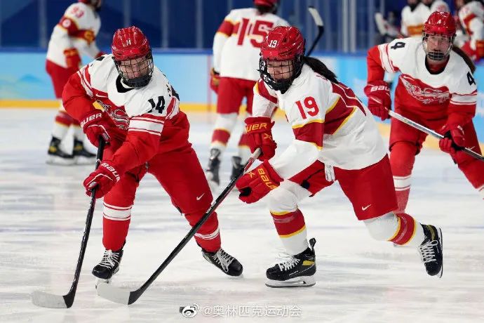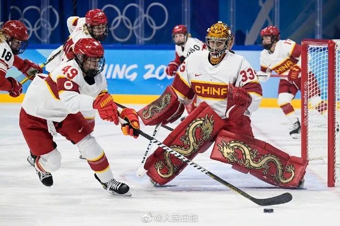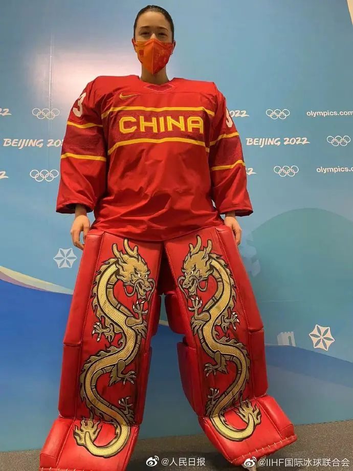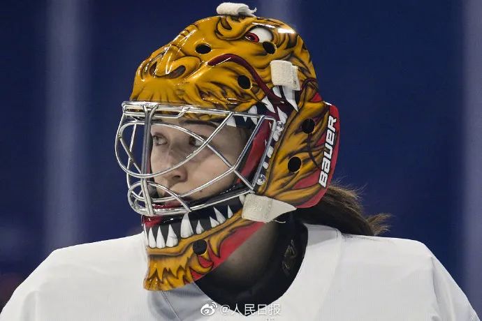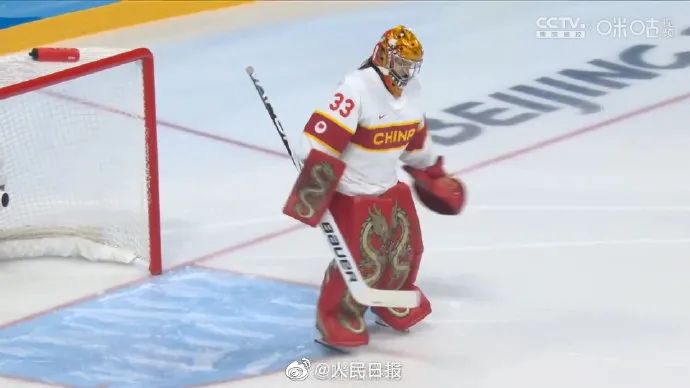 比赛十分精彩,中国女子冰球队的“装备”也十分夺人眼球。