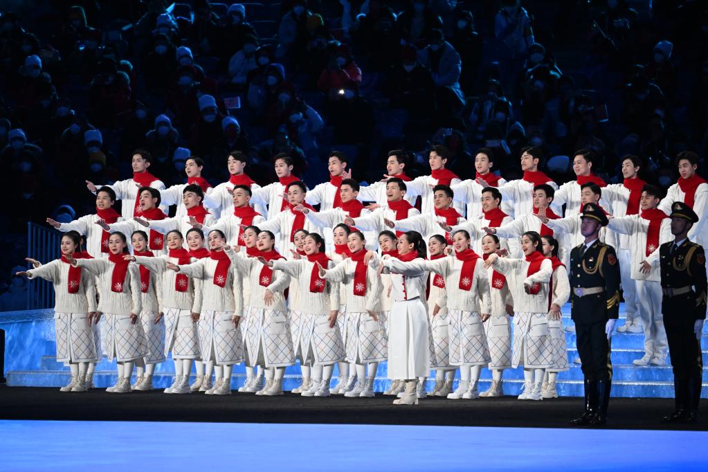 2022年3月4日晚,北京冬残奥会开幕式上,中国残疾人艺术团团长邰丽华带领数十名残疾人表演者用手语“唱”国歌。