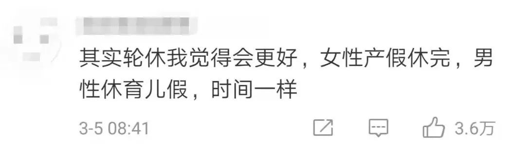 还有网友提出,轮休产假、育儿假是否会更科学: