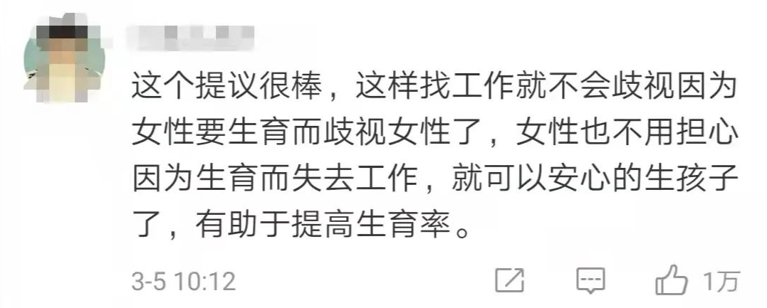有网友大呼支持,并表示这样可以减轻女性带孩子的负担,还在一定程度上避免就业歧视,同时也能让女性生育更加安心,有利于提高生育率。