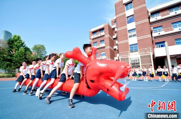 “端午节是中华民族的传统节日,赛龙舟又是端午节里的典型传统项目。在校园里举行旱地龙舟赛就是为了让孩子们感受传统文化的魅力,体验团结合作的精神。”徐州市民主路小学校长周娅说。