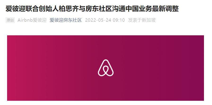 随后,爱彼迎房东社区官方公众号亦公布了一篇《爱彼迎联合创始人柏思齐与房东社区沟通中国业务最新调整》公告,Airbnb 联合创始人、中国区主席柏思齐(Nathan Blecharczyk)在信件中指出:爱彼迎中国自 2022 年 7 月 30 日起,暂停支持境内游房源、体验及相关预订。