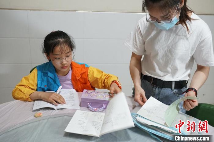 妈妈在帮孙佳瑞检查上学要带的书本。 孙权 摄