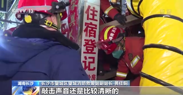 长沙市望城区望城消防救援站副站长 黄佳铜:我们会问她是几个人被困,你如果是一个人就敲一下,敲击声音还是比较清晰的,所以我们很快地确认了她一些基本的信息。