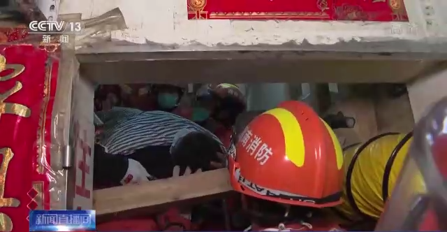 黄佳铜:当一些杂物清理之后,她敲击的声音传递也是越来越清晰,我们根据她传递的声音再次确认了我们前进的方向,利用一些破拆器材,将生命通道一步步接近被困者。