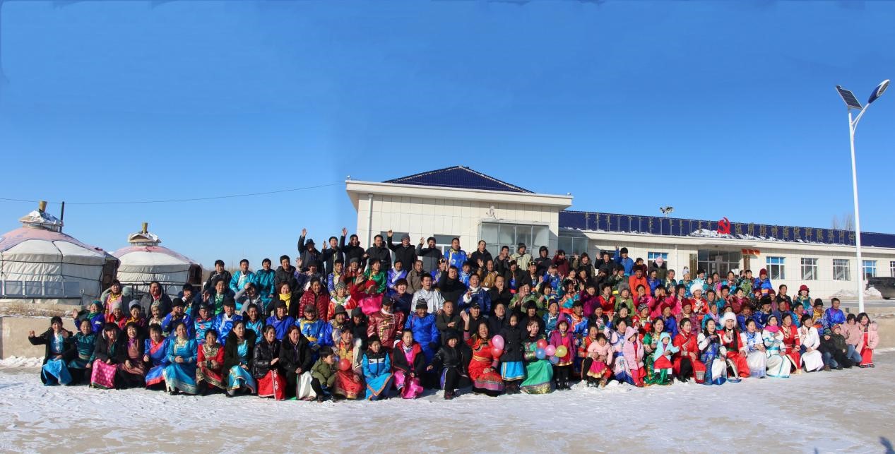 每年过年时,东萨拉嘎查的农牧民群众都要拍一张喜乐祥和的“全家福”。 受访者供图