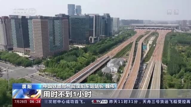 中国铁路郑州局濮阳东站站长 魏伟:旅客乘坐高铁到达郑州东站用时不到1小时,和传统的汽车出行方式对比,时间缩短了一半。
